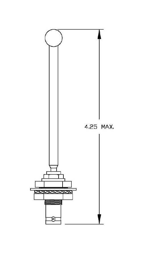 The AV-21 is a rod style broadband radio telephone antenna which utilizes a BNC connector that allows for a smaller mounting hole. The antenna is designed to operate at speeds up to 350 mph and altitudes up to 50,000 feet. It has a drag force of 0.41 lbs at 250 mph.